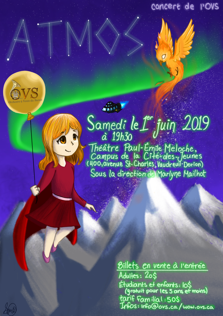 Atmos : diminutif d’atmosphère, l’enveloppe gazeuse qui entoure la terre et aussi synonyme d’ambiance. C’est la thématique qui sera à l’honneur cette année lors du concert annuel de l’OVS. Venez entendre des pièces qui évoqueront les différentes facettes de l’air : des lieux, des personnages fictifs ou encore des phénomènes météorologiques.
